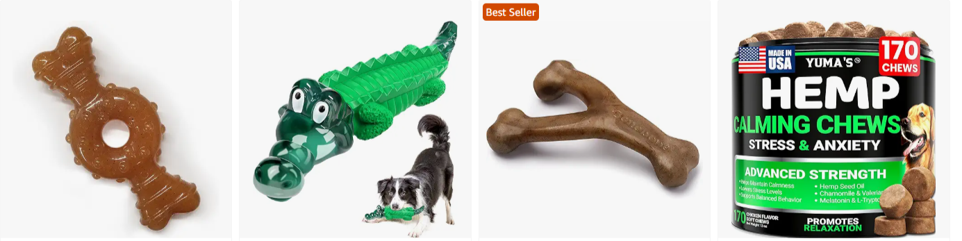 If your dog likes chewing furniture, shoes, or table legs… this category is your friend.
